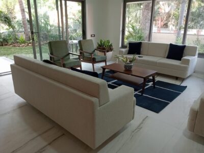 Teakasa is specialized in crafting premium bungalow furniture in Ahmedabad. We offered complete home furnishings for a bungalow between 2018 and 2019, including a sofa, double bed, swing, side tables, and more, ensuring a perfect blend of elegance and functionality tailored to the homeowner’s lifestyle.